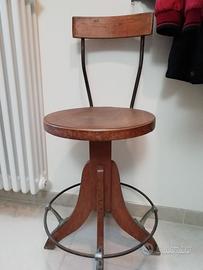 Bellissimo tecnigrafo con tavolo in legno e lampada con interruttore a farfalla, completo di sgabello.