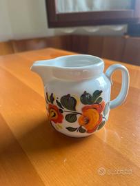 Teiera e lattiera in ceramica bianca decorati con motivi floreali dipinti a mano