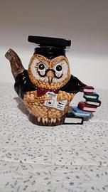 Teiera figurata inglese da collezione a forma di gufo insegnante in ceramica Staffordshire dipinta a mano. La teiera è nuova e non è mai stata usata. Ritiro gratuito a Cornaredo.