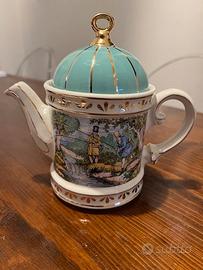 Teiera in pietra di ferro "Fishing" di James Sadler Originale Anni 50. Perfettamente conservata, dipinta a mano con dovizia di dettagli. Scene di pesca di due signori inglesi, dai colori brillanti. Alla base il marchio e l'autenticità del pezzo. Dimensioni: larghezza 19 cm, altezza 18 cm, circonferenza 34 cm. Design ricercato, perfetta per l'uso quotidiano ma anche per le occasioni speciali. Splendida da utilizzare, adatta ad ogni contesto e ad ogni ambiente. Bella da possedere ma anche da regalare. Un vero e proprio tocco di eleganza e raffinatezza. Un pezzo unico, pregiato e prezioso. Introvabile. Bellissimo.