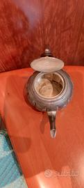 teiera in metallo vintage, manico e pomello in legno, in ottime condizioni, diametro superiore cm 6 diametro base cm 6 dal manico al beccuccio cm 21 altezza fino al pomello cm 10