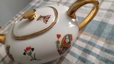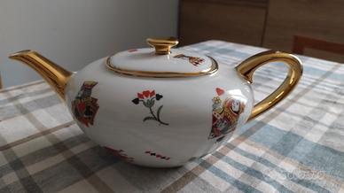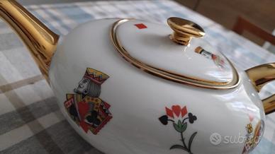 teiera in porcellana bianca e oro decoro figure carta da gioco re regina fante jolly vintage integra
