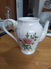 Teiera in ceramica bianca con decorazioni floreali. Design Richard Strasburgo. Decorazioni floreali dipinte a mano. Manico e beccuccio eleganti.