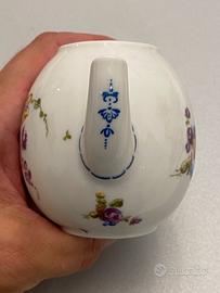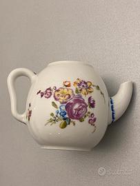 Teiera da Collezione in Porcellana, alta 8 cm, marca Franklin Mint 1985, serie Mennecy Victoria and Albert Museum Collection, decorata a mano con motivo floreale multicolore e coperchio è sormontato da una piccola rosa modellata in rilievo.