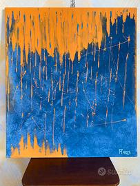 Grande tela centimetri 70 × 80 tela blu e arancione quadro astratto moderno. Particolare opera colori complementari. Astratto contemporaneo. adatto a qualsiasi parete , complemento d’arredo per un ambiente moderno, un locale o una vetrina. Colata di colore, Canvas fine art acrilic.