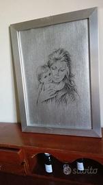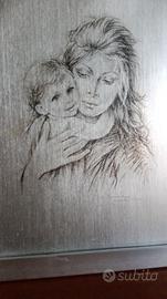 quadro originale su carboncino di giuseppe tarantino misura altezza 51 cm e larghezza 38 cm, raffigura madre con bimbo,milano 76.