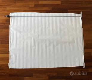 - tela di cotone sfusa arrotolata, da tirare bene su telaio per eliminare le pieghe: 110x150 cm al netto di bordatura e difetti