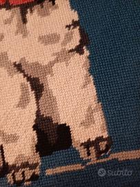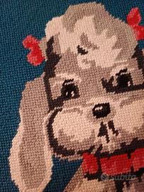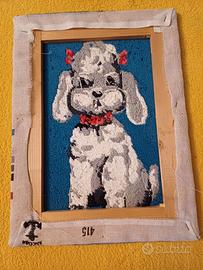 Tela ricamata interamente a mano con soggetto un tenero barboncino bianco - misure 30x40 cm - in buone condizioni