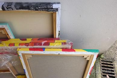 Vendo lotto di 12 tele già dipinte sulle quali è possibile, per esempio, ridipingere sopra.