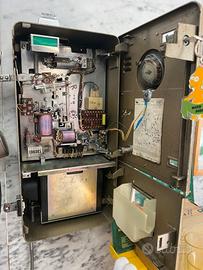 Telefono a gettoni anni ’60 originale, completamente revisionato e perfettamente funzionante. Il telefono è completo di chiave ed è stato controllato in ogni sua parte. Può essere collegato direttamente alla linea telefonica domestica e consente di ricevere chiamate. Per effettuare anche chiamate in uscita è necessario installare uno scambiatore di linea (non incluso nella vendita). Ideale come oggetto da collezione o elemento d’arredo vintage, ma anche utilizzabile nella vita quotidiana. Possibilità di fatturazione per aziende.