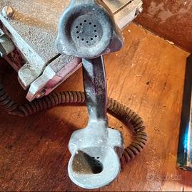 Telefono da parete usato in ambienti a rischio di scoppio/deflagrazione come miniere, molini, sala macchine industriali/navali. Dismesso ai primi anni 2000. Fornito senza cavo di connessione alla linea. Il corpo in alluminio si è ossidato, cornetta in bachelite. Da pulire e revisionare ma potenzialmente in grado di funzionare. Pesa 4,5 kg. Dato il peso eccessivo si propone il ritiro a mano in località Valle Sessera o Valsesia