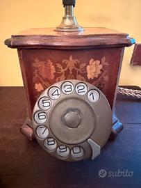 Vendo stupendo ed elegante telefono vintage in legno di radica un vero pezzo d'arredo unico sia in ambiente classico che moderno che da un certo stile alla vostra casa. - Base in legno con particolari decorazioni floreali. - Cornetta in legno e metallo. - Tastierino numerico rotante. - Cavo intrecciato. - Perfetto e funzionante.