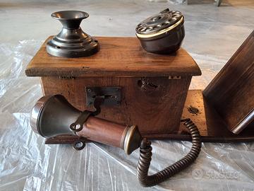 Bellissimo telefono antico in legno massello, un pezzo di storia nel mondo della telefonia.
