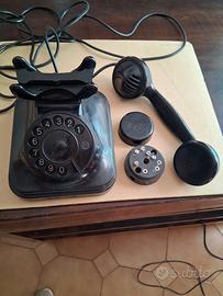 antico telefono in bachelite nera marca face, con attacco per linea. etichetta teti originale.