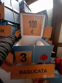 Vendo telefono verniciato di rosso e 20 scatole (che corrispondono alle regioni) ispirate alla trasmissione affari tuoi, fatte a mano in cartone, simili a quelle vere.....prezzo trattabile spese a carico del compratore