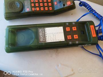 TELEFONO SWATCH TWINTAM ANN0 1989 CHIAMATO ANCHE TELEFONO GEMELLO PERCHE HA DUE RICEVITORI , POSSONO PARLARE E ASCOLTARE CONTEMPORANEAMENTE DUE PERSONE DESING GIORGETTO GIUGIARO COMPLETO DI CAVI VIOLA ORIGINALI