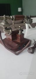 Telefono trovato in una cantinola non so se antico e funzionante a questo lo vendo per uso decorativo in legno noce e bronzo presenta piccola abrasione vedi foto nel contesto buone condizioni