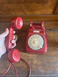 Bellissimo telefono fisso vintage rosso con disco combinatore (a rotella), tipico degli anni ‘60/‘70. •Colore rosso acceso originale •Disco numerico funzionante •Cornetta ergonomica con cavo originale •Oggetto iconico del design italiano Perfetto per: ✔ arredamento vintage ✔ scenografie / set fotografici ✔ collezionisti 📌 Presente spina originale Prezzo trattabile