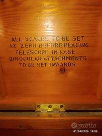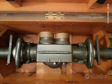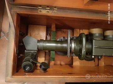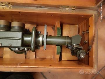 Vendo telemetro tedesco del 1942 nella sua originale cassa. L oggetto è con molta probabilità un N.O.S. Si presenta in ottime condizioni, con vani laterali interni nei quali sono conservate coprioculari per un totale di 4 PZ più le gomme ( alcune di queste ' cotte' ma direi che è più che normale visto il tempo trascorso) L oggetto appare integro e senza segni , completo,non so se per mia ignoranza è mancante del cavalletto sul quale poteva essere montato ..Non può essere spedito viste le dimensioni ed il peso ( 30 kg circa) ma è possibile visionarlo e ritirarlo in loco. Ulteriori foto o video agli interessati..