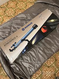 KONUS 60X 800mm Konuspace-6 Telescope Questo telescopio è di livello base, ideale per i principianti che desiderano avvicinarsi al mondo dell’astronomia. Features & details Multicoated optics 90 degree diagonal mirror Focal length: 800mm, Diameter: 60mm, Focal ratio: f/13.5 Eyepieces H 8 mm and H 20 mm, diam. 24.5 mm (1") 5x24 finder scope