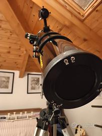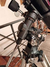 Vendo stupendo telescopio newtoniano Omegon N150/750 eq 4. Specchio primario di 150 mm, montatura equatoriale manuale eq 4, cannocchiale polare integrato, treppiede in alluminio, peso di bilanciamento. Corredato da due oculari: 25mm e 6 mm più una lente di Barlow. Al telescopio è stato installato un cercatore 8x50 GSO, un supporto Omegon a coda di rondine. Fornisco insieme al suo cercatore olografico di serie. Perfettamente collimato da me con laser. Adatto per avvicinarsi all'astronomia. Vendo in quanto utilizzo quasi esclusivamente il mio Skywatcher Dobson 300/1500.
