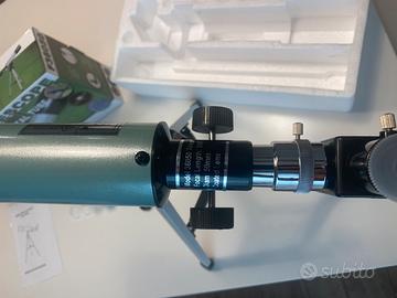 Vendo telescopio livello amatoriale usato una sola volta corredato da doppia ottica oculare di ingrandimento 18x e 60x rispettivamente 20mm e 6mm, oculare raddrizzabile 1,5x che aumenta l’ingrandimento del telescopio di 1,5 volte e manuale di istruzioni in italiano per montaggio e utilizzo.