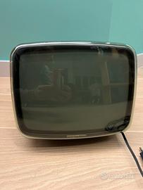 televisore Brionvega Algol. Progettato nel 1964 da Marco Zanuso e Richard Sapper, è noto per il suo schermo inclinato e arrotondato, che ricorda un cagnolino che guarda in alto.