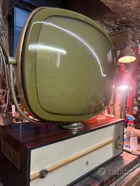 Design iconico "space age" con schermo girevole, pezzo molto raro da collezione e arredamento vintage.