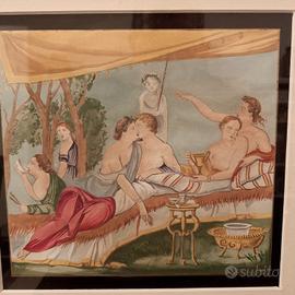 tempera primi '800 su puntasecca immagine mitologica - foglio cm 20x19 con cornice avorio e oro cm 44x38