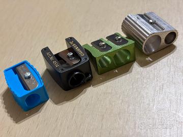 Temperamatite vintage di varie marche,con foro singolo o a 2 fori,in alluminio(a 2 fori) o plastica (1foro),disponibili in quantità,mai utilizzati,da collezione privata.
