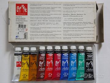 10 tubi mai aperti di tempere extra fini Caran D'Ache. Scatola di cartone usurata ma tubi nuovi.