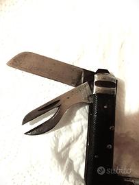 Temperino militare a serramanico tipo Britannico, della seconda guerra mondiale. Modello SST - 1943. (In dotazione anche all'Esercito Italiano) Lama principale, lama apriscatole, cuneo per forature, cacciavite e gancio. Marchiato sulla lama principale " Coricama " Ottime condizioni. Misura 9,5 cm x 4,0 cm x 2,0 cm. Misura 16,5 cm di lunghezza quando è aperto. Pesa 145 grammi.