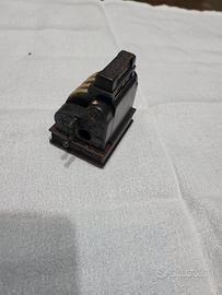 Vendo splendido temperamatite da collezione che riproduce un antico registratore di cassa modello "National". Si tratta di un pezzo originale della storica azienda spagnola Playme (Beniparrell), leader mondiale negli anni '70/'80 per queste miniature in metallo. Dettagli dell'oggetto: Marca: Playme - Made in Spain (marchio inciso sotto la base). Modello: Registratore di cassa con dettagli dorati, scritte "Contado" e tastiera numerica ben definita. Meccanismo: Dotato di manovella laterale rotante. Materiale: Metallo pesante (zama) con elegante finitura brunita. Condizioni: Ottime, come da foto. La struttura è solida e la lama del temperino è presente nella parte inferiore. Un pezzo iconico, perfetto per collezionisti o come raffinato oggetto di modernariato da scrivania.