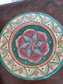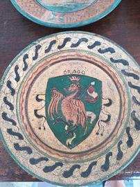 4 piatti terracotta Montopoli. Dante Milani. Periodo 1932 /1943. Ottimo stato di conservazione. Decori realizzati a graffio su ingobbio. Diam cm 21. Possibile ritiro a Roma sud. SOLO IN BLOCCO € 150