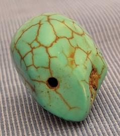 Manufatto originale di artigianto messicano, una produzione in onore di "Santa Muerte", la Santa messicana con il volto a forma di teschio. Non una produzione moderna, realizzato in autentico turchese, misura 3 centimetri di lunghezza, è presente un foro passatore per inserire una maglia ed essere portato come un ciondolo su una collana o un bracciale, un lavoro molto semplice che potete fare da soli o far fare al vostro orafo di fiducia.