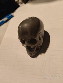 teschio di resina epossidica grigio/argentato alto intorno ai 6cm