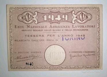 Tessera Ente Nazionale Assistenza Lavoratori di Torino anno 1949.