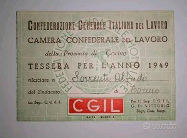 Tessera Confederazione Generale Italiana del Lavoro di Torino/Camera Confederale del Lavoro (3 pezzi anni 1948/49/50).