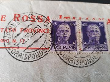 Lotto con tessera della Croce Rossa Italiana e busta ufficiale con timbro del periodo Anni 30