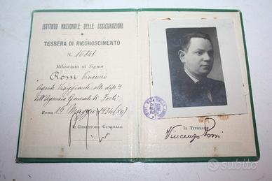 TESSERA riconoscimento istituto nazionale delle assicurazioni direttore generale roma 1934