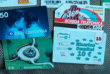 collezione di circa 95 tessere di cariche telefoniche usate tra cui wind, tim, omnitel, blu, telecom, tre,poste mobile.