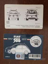 contenenti il francobollo emesso, rispettivamente, nel 2007 per il 50° e nel 2017 per il 60° anniversario di inizio produzione della Fiat 500.