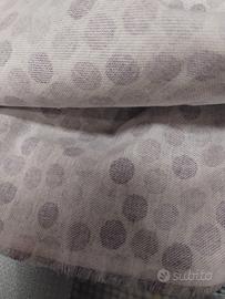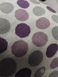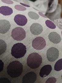 tessuto cotone e poliestere carino tema pois viola e lilla su fondo bianco 1 metrox1,40,,,disponibile metratura abbondante