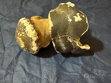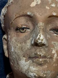 Antica testa in terracotta raffigurante Sant'Antonio. Presenta segni del tempo e alcune imperfezioni, ma mantiene intatto il suo fascino.