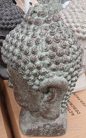 BELLISSIMA TESTA DI BUDDA COLOR GRIGIO/VERDE ARDESIA IN FIBRA D'ARGILLA MISURA GRANDE.
