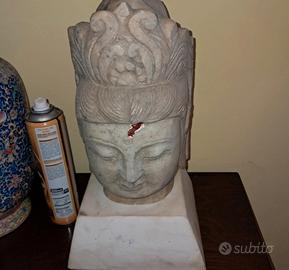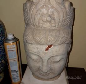 testa di buddha in pietra con oiedistallo sempre in pietra altezza ckn piedistallo 30 cm peso totale circa 15/20 kg