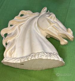 Elegante scultura che raffigura una testa di cavallo, ideale come complemento d’arredo per amanti dell’equitazione o collezionisti.