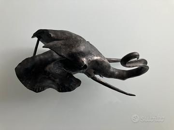 Testa di elefante in ferro battuto, cm 22, con punzone Ivan Zanoni