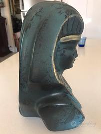 Testa di faraone in ceramica color blu scuro con finiture color oro,alta cm.27 larghezza massima cm.15