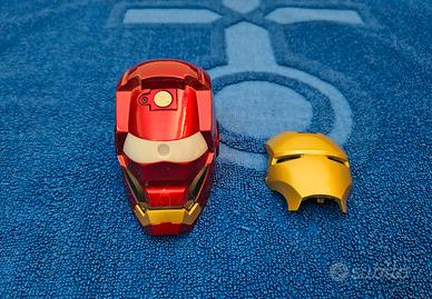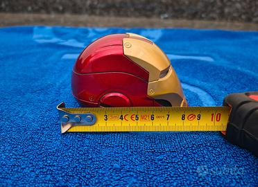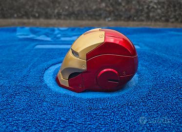 Modellino del casco dell'armatura di IronMan realizzata in metallo da DeAgostini. La testa misura circa 9 x 5 centimetri e pesa circa 200 grammi, ovviamente non è indossabile, trattandosi di un modellino. La maschera frontale è magnetica e si può staccare per inserire delle pile che servono ad accendere gli occhi, tramite una rotella laterale.